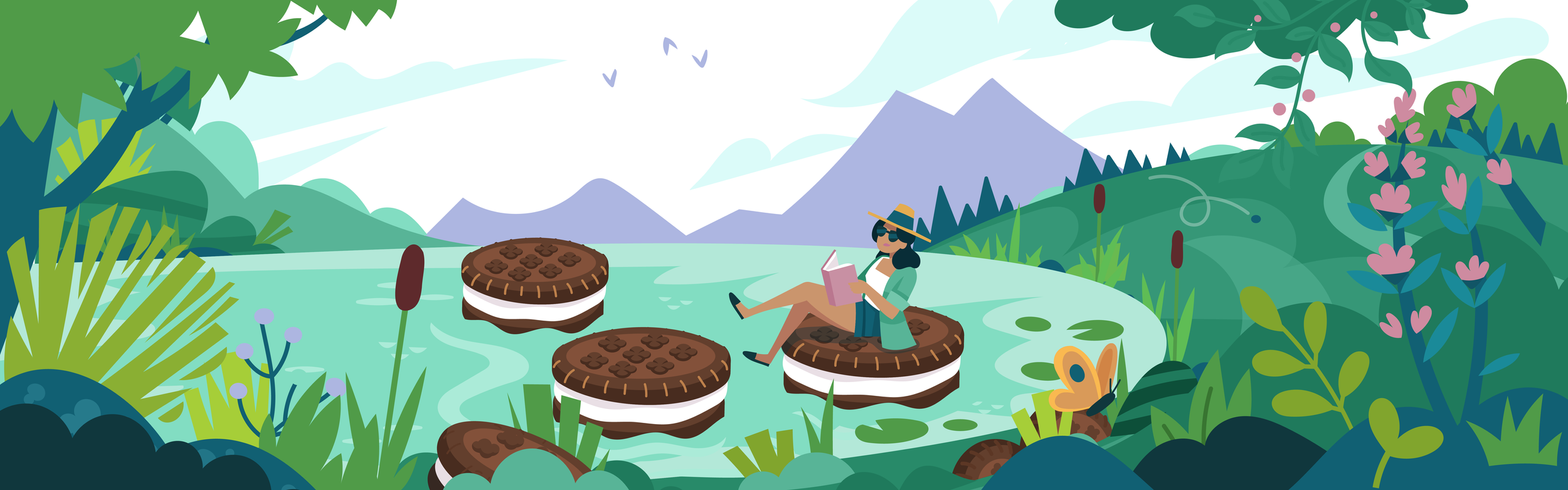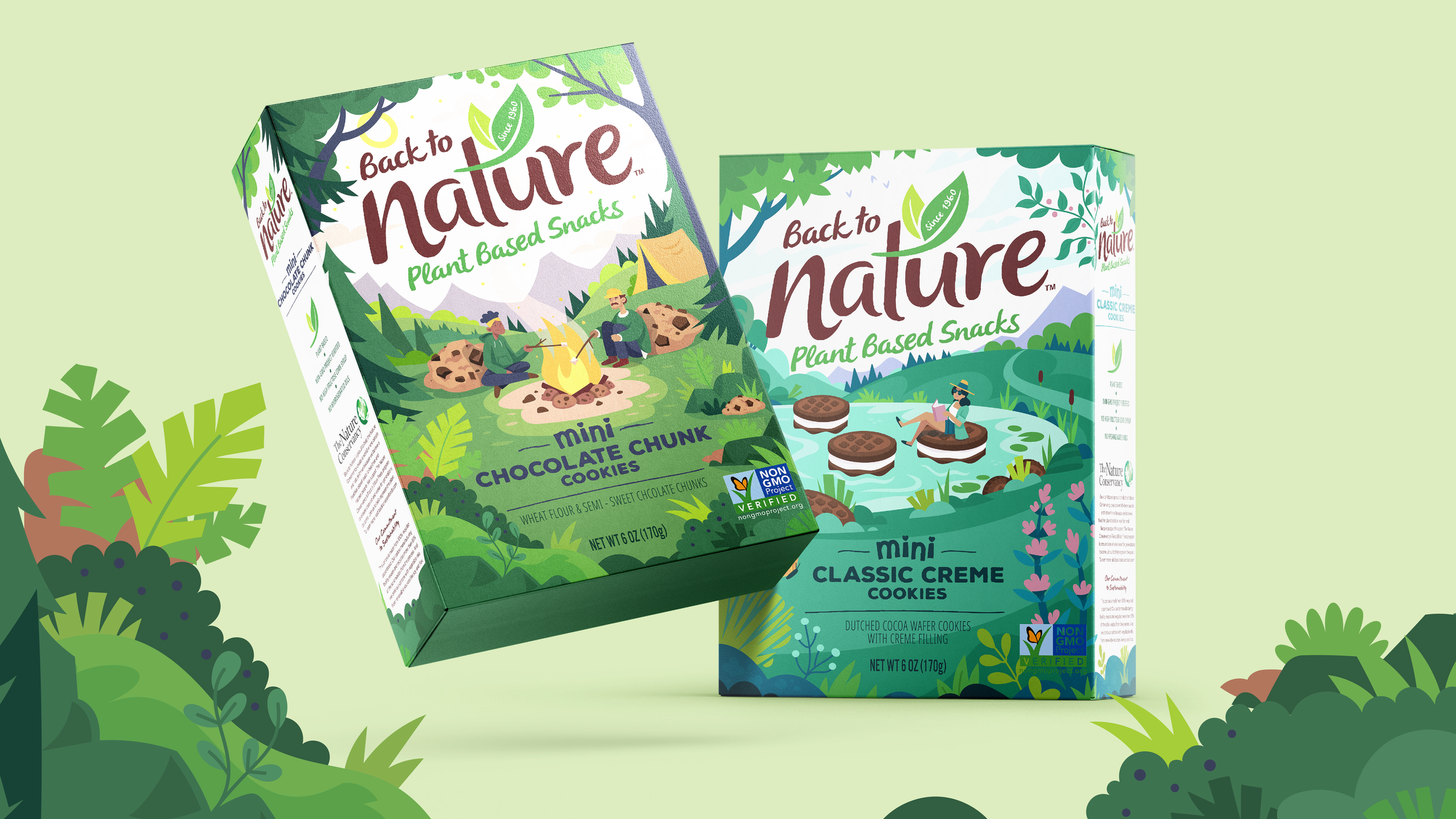 Inspired by Back To Natureโs sustainability story and earthy packaging, I created a series of illustrations showing characters enjoying plant-based snacks in serene natural settings. The work is designed as a modular system, with consistent tone and reusable elements that make it straightforward to extend across additional scenes and marketing needs.